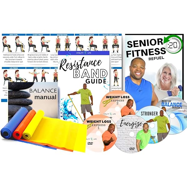 Amazon Com Exercise Dvd For Seniors 20 Refuel 5 Dvds 3 Fitness Bands Resistance Band Poster Balance Exercise Manual Bonus Gift All Exercise For Seniors Are Shown Both
